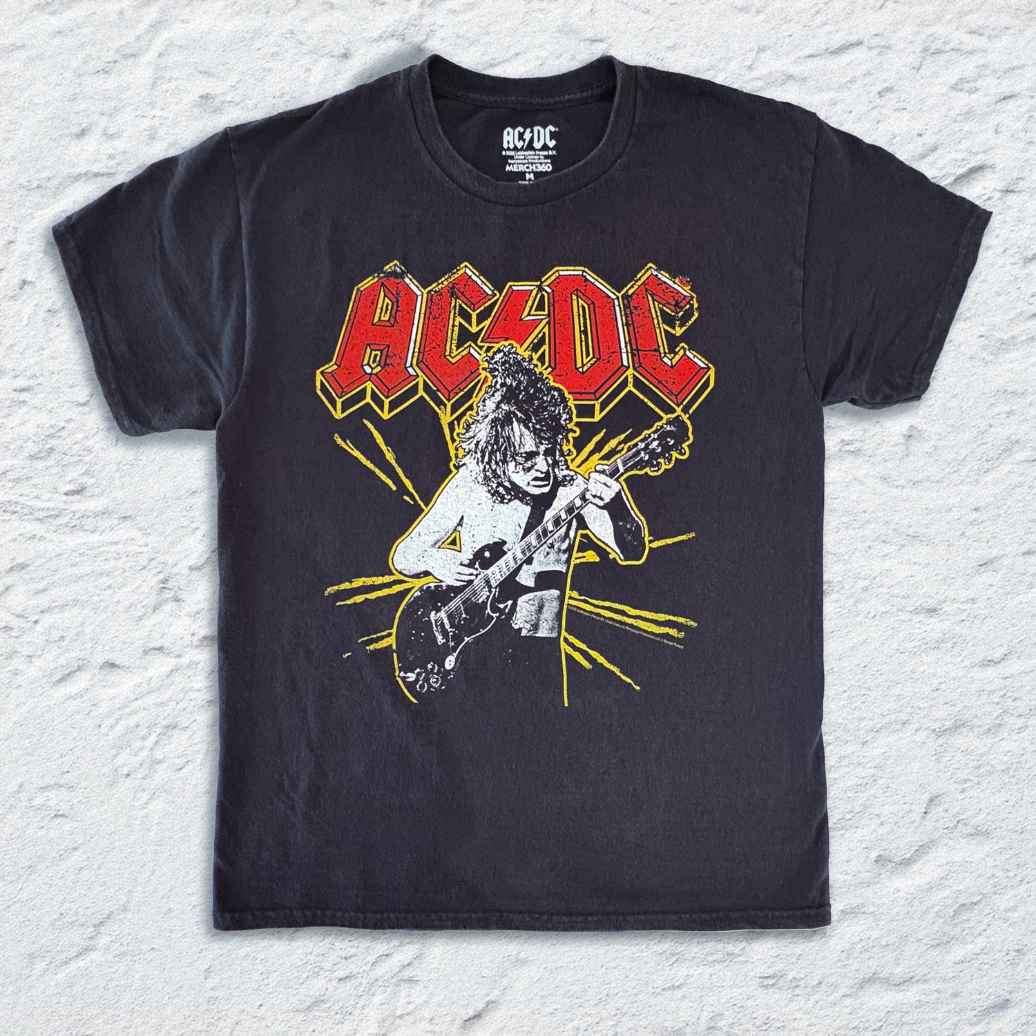 Show your love for AC/DC with the Angus Spark Black Vintage T-shirt from the Official Merchandise Store. This vintage-style black tee features the striking Angus Spark design, combining classic rock band style with soft, high-quality fabric. Perfect for concerts, casual wear, or adding to your AC/DC merch collection, this t-shirt is a standout piece for any fan. Grab yours today from the Official Merchandise Store and wear your passion for AC/DC with pride.