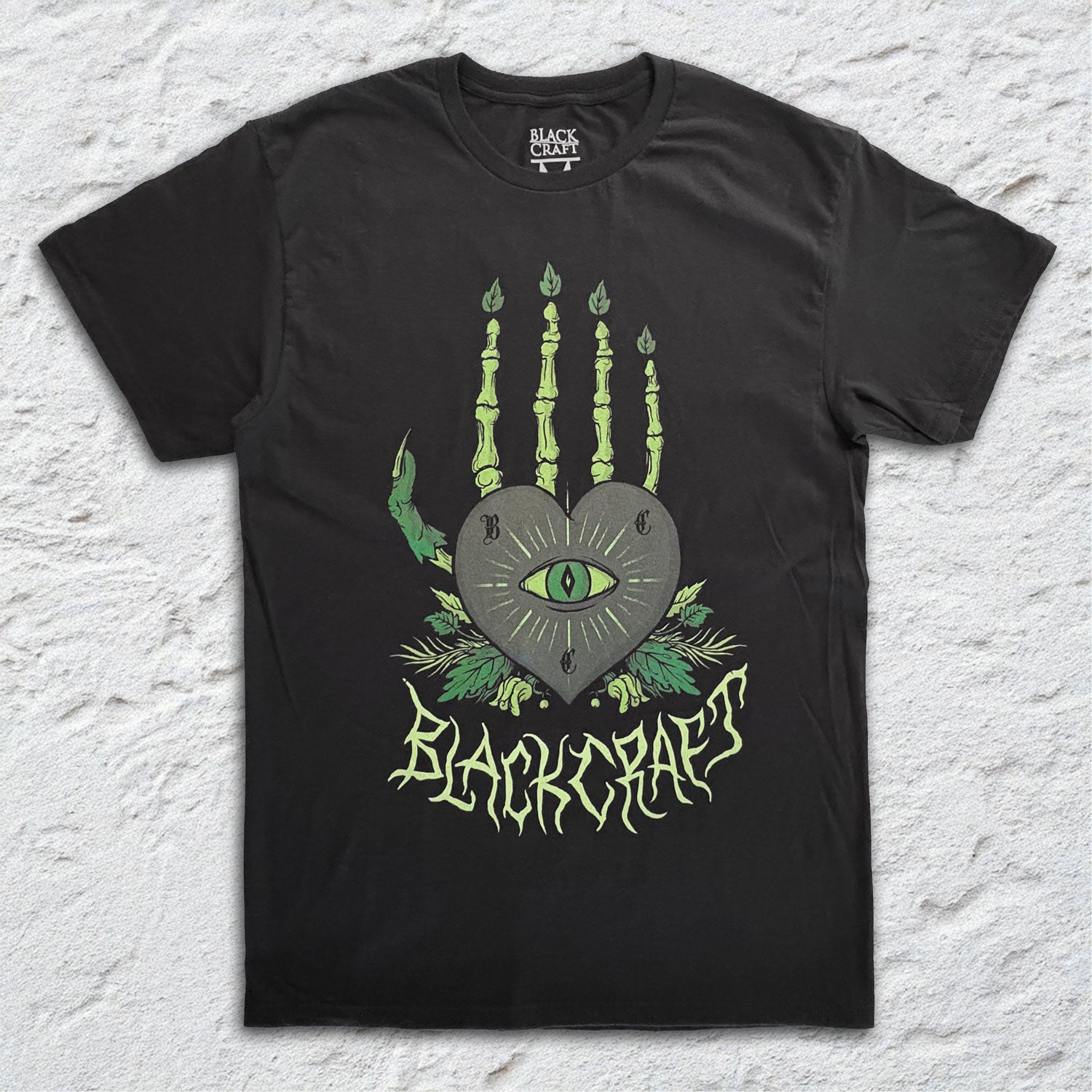 Show your dark side with heart in the Blackcraft Heart Hand Black T-Shirt. Featuring the iconic heart hand graphic printed in striking detail, this tee blends gothic artistry with everyday wearability. Made from soft, premium black cotton, it delivers comfort without compromising on attitude. Perfect for fans of the occult aesthetic and those who live by Blackcraft’s mantra of self-empowerment and individuality. Available now from the Official Merchandise Store.