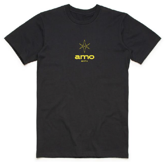 Yellow on black, grisly lack with Bring Me The Horizon's Hexagram with the amo font from the album on the front on the T-shirt
