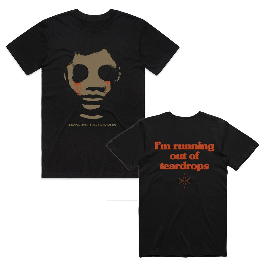 This BMTH T-shirt features an eyeball-less design on the front, and the line 'I'm running out of teardrops' from their teardrop song.