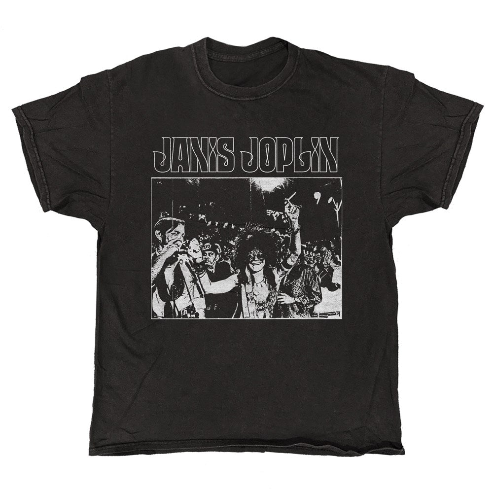 Step back into the golden era of rock with the Janis Joplin Group Photo vintage tee. This t-shirt captures a moment in music history—featuring an iconic photo that celebrates the raw soul, wild energy, and unfiltered spirit of Janis and her band.