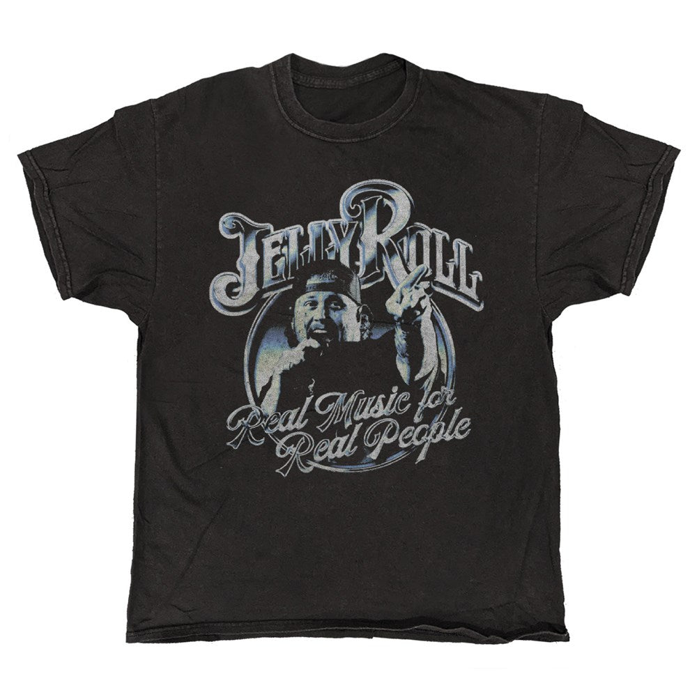 The Jelly Roll Real People Black Vintage T-Shirt is a go-to for fans who want something that feels authentic and looks effortless. With a vintage black wash and a comfortable, easy fit, it’s made to wear on repeat. The front features a graphic that's bold and straight to the point. It’s official Jelly Roll merch, available at the Official Merchandise Store, so you know it’s the real thing.