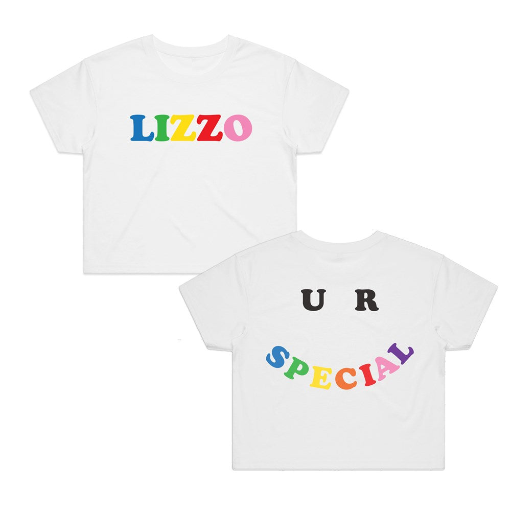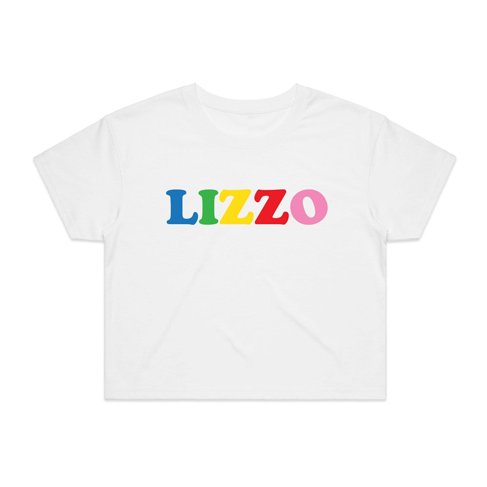 Rock your love for Lizzo in style with this white crop top featuring her special letters logo.