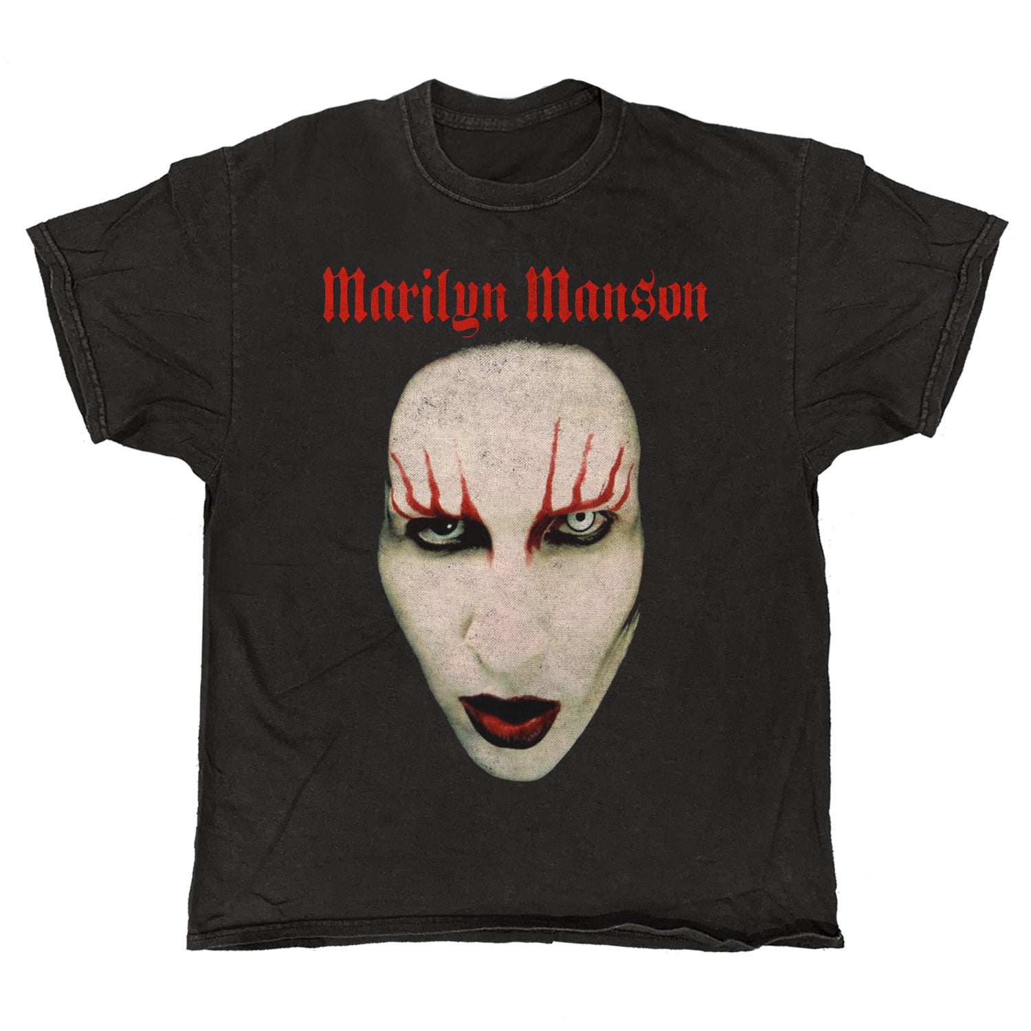 This Marilyn Manson T-shirt features a vintage style of the face of Marilyn Manson Hollywood style