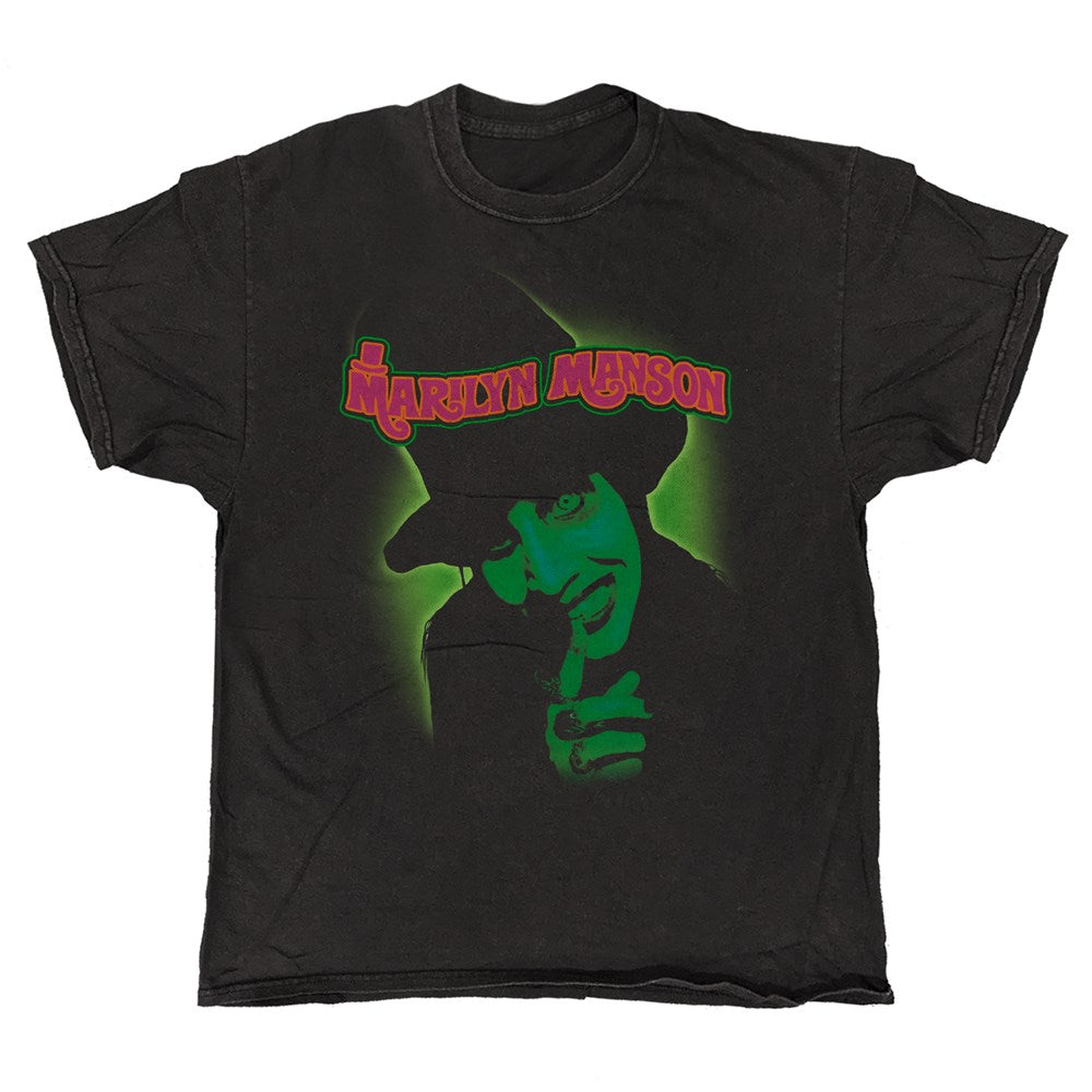 This Marilyn Manson T-shirt features the artwork from the album 'Smells Like Children' featuring the Willy Wonka-esque font