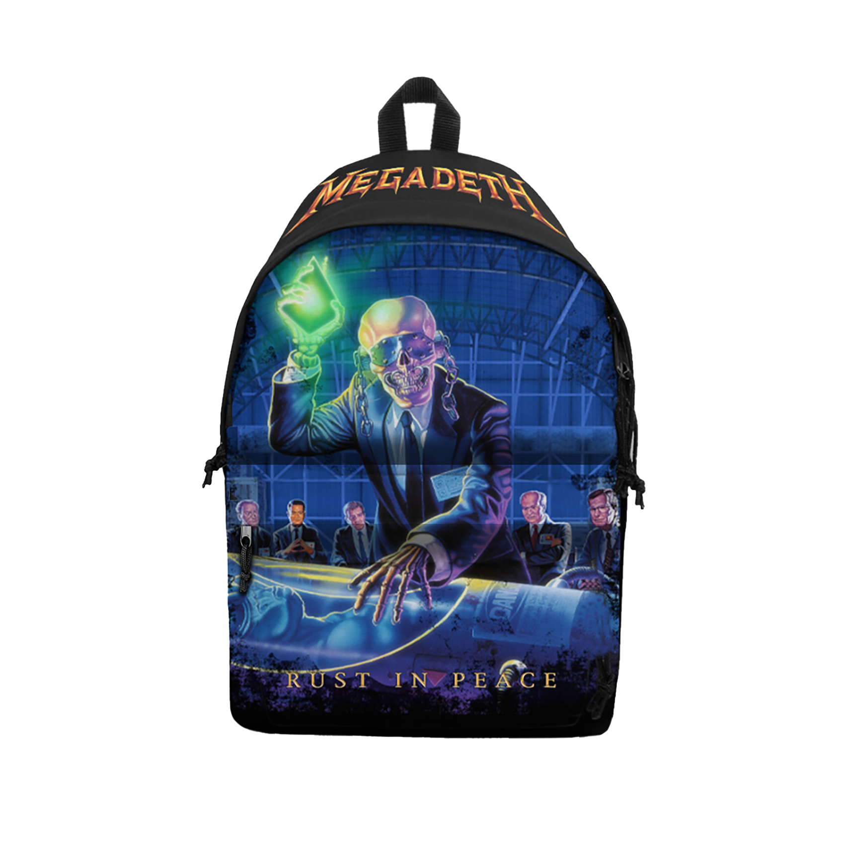 Introducing the Rocksax Megadeth Daypack - Rust In Peace, the perfect companion for school, festivals, and all your everyday adventures. With its spacious main compartment and adjustable straps, you can carry your items in comfort and style throughout your day.