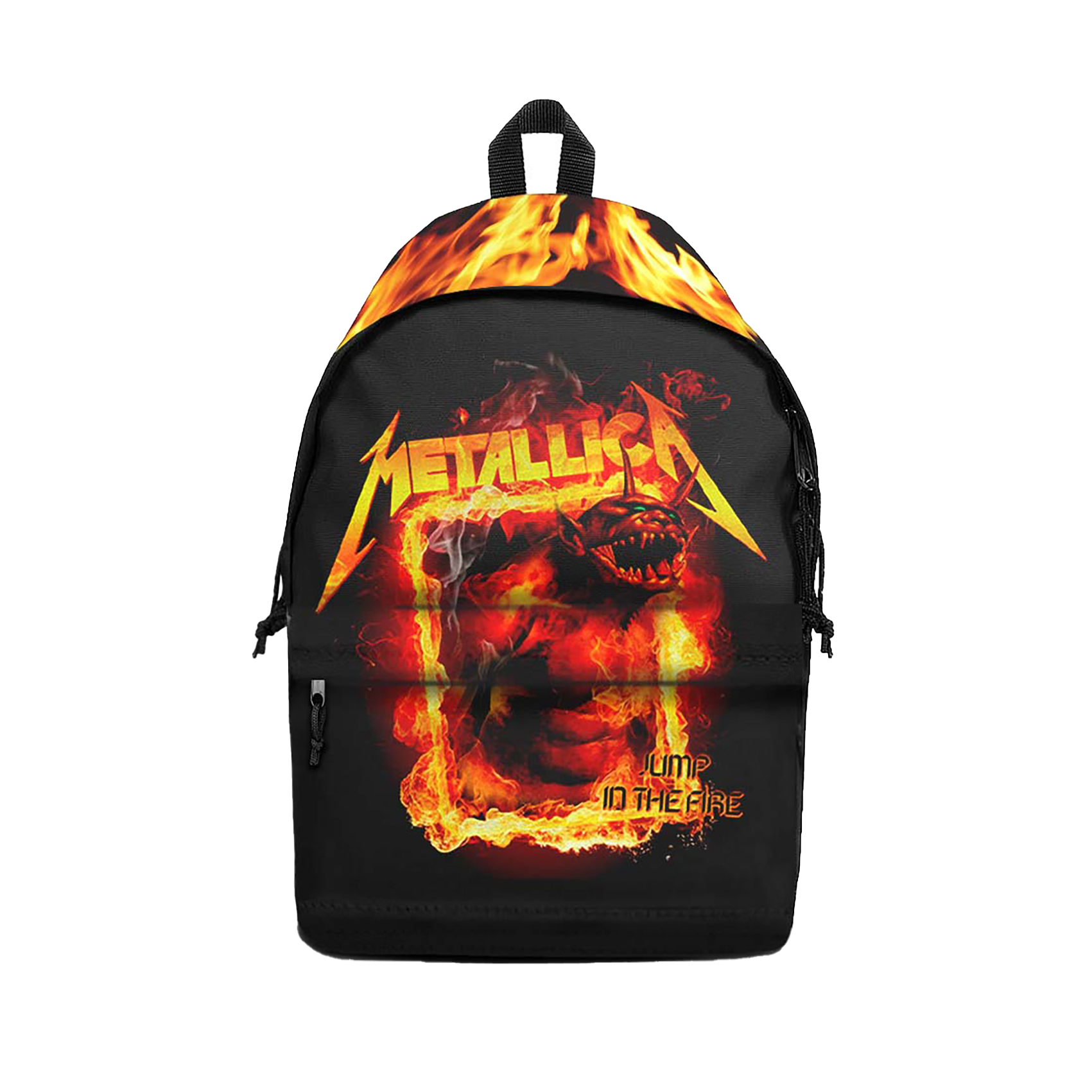 Introducing the Rocksax Metallica Daypack - Jump In The Fire, the perfect companion for school, festivals, and all your everyday adventures. With its spacious main compartment and adjustable straps, you can carry your items in comfort and style throughout your day.